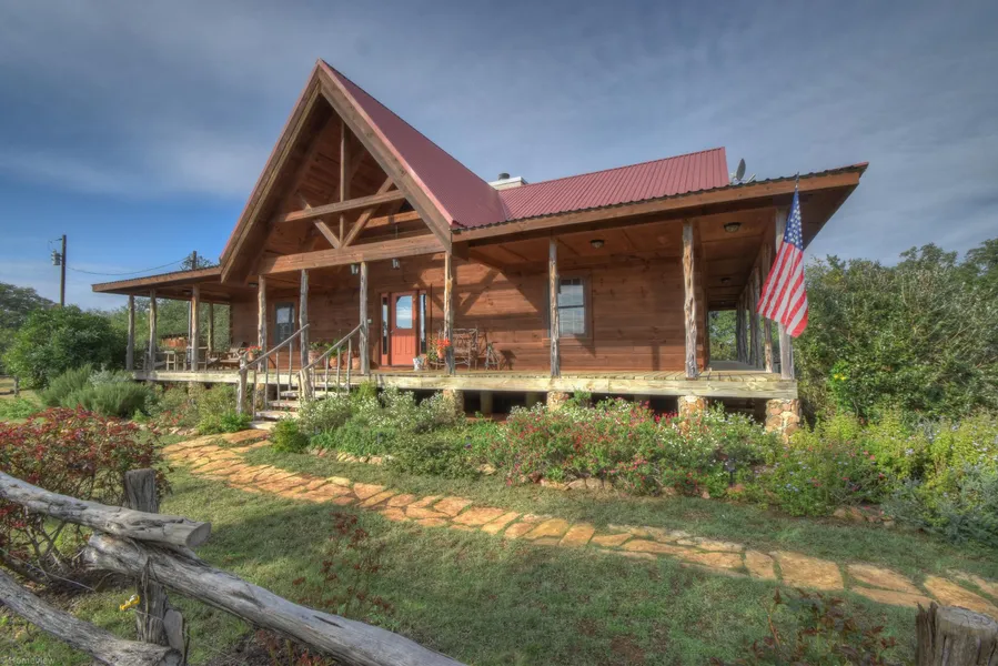 The moment you drive up to this lovely pine log home, you feel right at home. This 3/2 approximately 1584 sf home is located on 25 ac in a rural subdivision. It is nestled among majestic oaks along beautiful seasonal Flag Creek, which borders the property on three sides. The seclusion of this gorgeous timbered property, Mesquite flooring, vaulted ceilings, and a wood burning stone fireplace, gives you the feel of being at a cabin in the Mountains, yet you're only minutes outside of Llano. Other features offered are beautiful xeriscape landscaping with low water maintenance and drought resistant native plants, various fruit trees, a metal roof, gazebo with hot tub, outdoor shower, tool shed w/extended cooking area, fenced chicken yard, fenced 50x70 garden w/irrigation system and a tank less hot water heater. Stroll along the sandy areas of beautiful Flag Creek under the shade of countless huge oaks that are several hundred years old or relax on the covered wrap-around porch, and you wont want to leave the peacefulness of this wonderful property. Contact Listing Agent for an appointment.