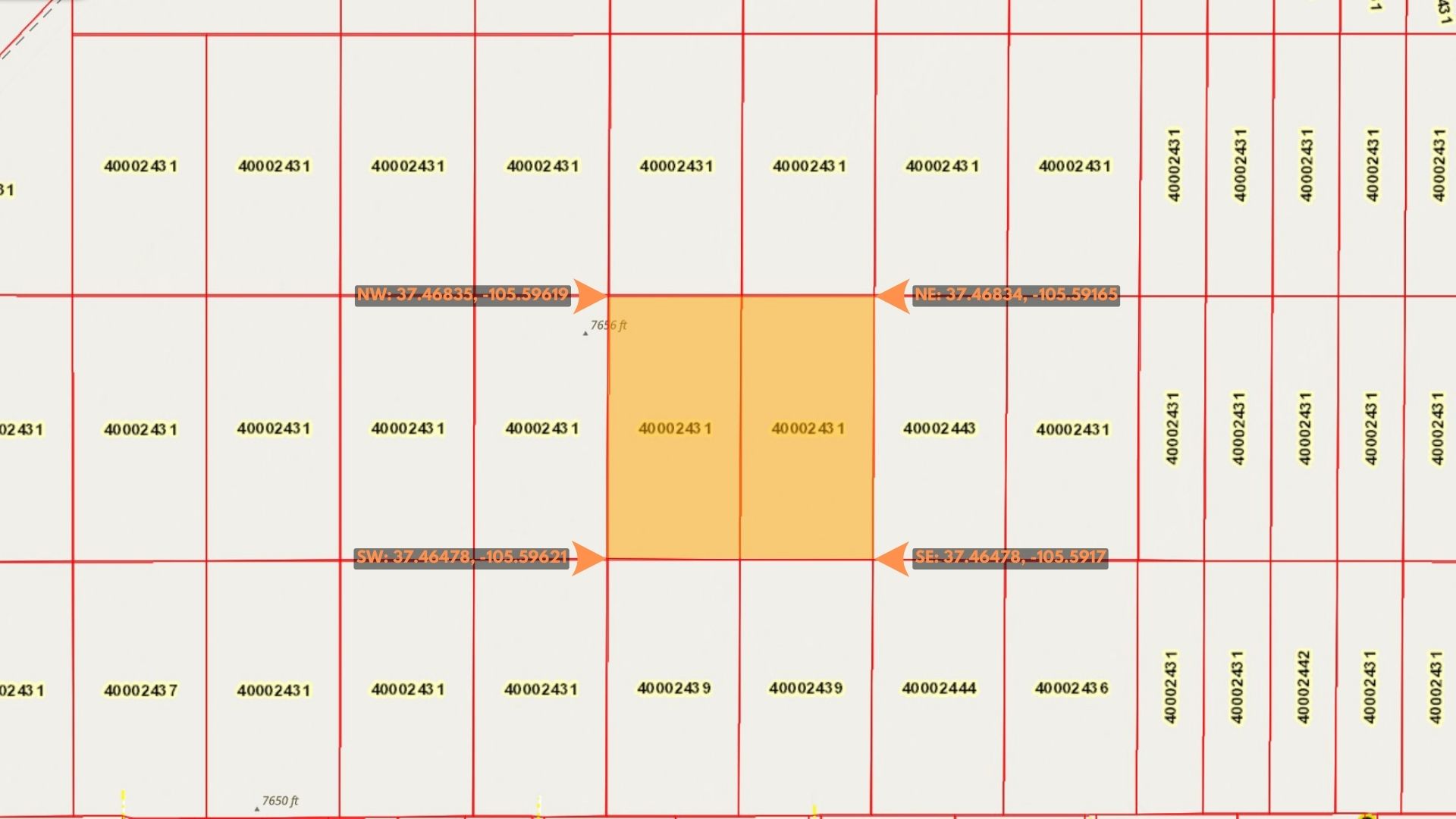 Southeast Corner: 37.46478, -105.5917