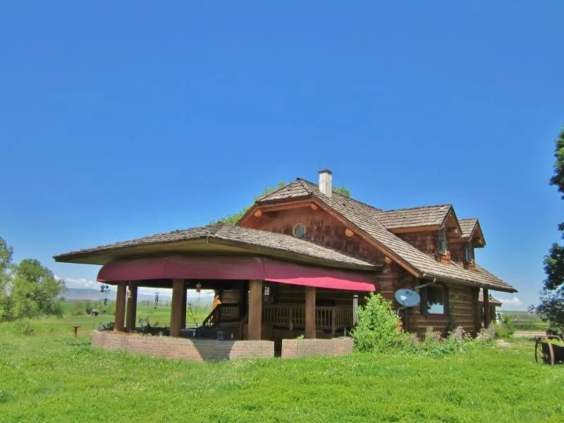 Custom log home - large hand hewn logs with chinking on 39+ acres wit irrigation, good hay crop, pond, creek and mature trees in landscaped yard. Austrian fireplace very efficient and unique. Interior finish is t&g vaulted ceilings and sheet rock. Large master bedroom with on suite bathroom, attached 2 car garage.