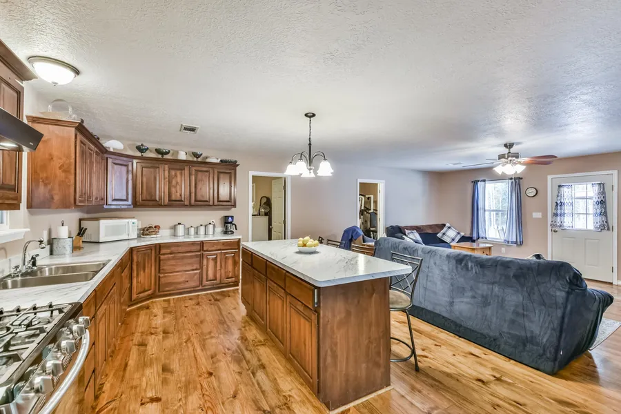 This is a very versatile tract featuring 39.4 acres. The home is a 3 bed two bath home with 1232 feet of living area. It has an open concept floor plan and beautiful cabinets. The home has a large back porch where you can watch the wildlife. Approximately 27 acres of the tract is in planted pine timber, while 5+ acres have large hardwood and pine. The other 7 acres is fenced for horses or cattle and also has a barn and stocked fishing pond. This tract offers a lot to any buyer.