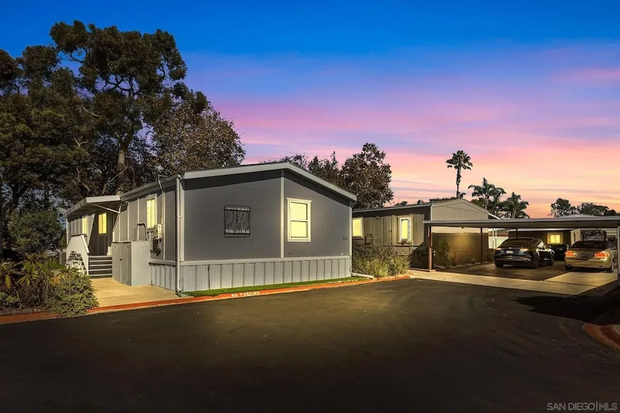 55+ Community on Land Lease. One owner must be 55+ and the other homeowners/residents are allowed to be 40+. Two covered parking spaces in front of home. Additional parking is allowed on the street WITHIN the park premises. Solar is leased @ $67.00 per month and was installed in 2022. Water Softener installed. Brand New Flooring installed in October 2025. This is a gated community and a code is required to enter the park premises. The TOTAL Space Rent/Fees are $1,758.77 paid monthly. Trash is $35.49 monthly. Water and SDGE are metered and paid separately and directly to each of the two public companies. Subleasing or rentals are Not in the Park. The proof of income requirement is $4,227.38 monthly. Animals are allowed at Ocean Bluffs. No more than 2 dogs per space, not weighing over 30lbs each. The Park amenities include: Greenbelt walking path with benches, one Clubhouse with a Kitchen, Ice Machine, 2 Restrooms, Poker Room, Bingo Nights, Library, Billiard Room with 3 tables, Year Round Heated Pool, Spa/Hot Tub, Dry Sauna, 2 Showers for Pool/Spa users, Laundry Room with 2 washers & 2 dryers. There is also a dry RV Storage lot available for rent with the Park for $100 per month per space for storage.