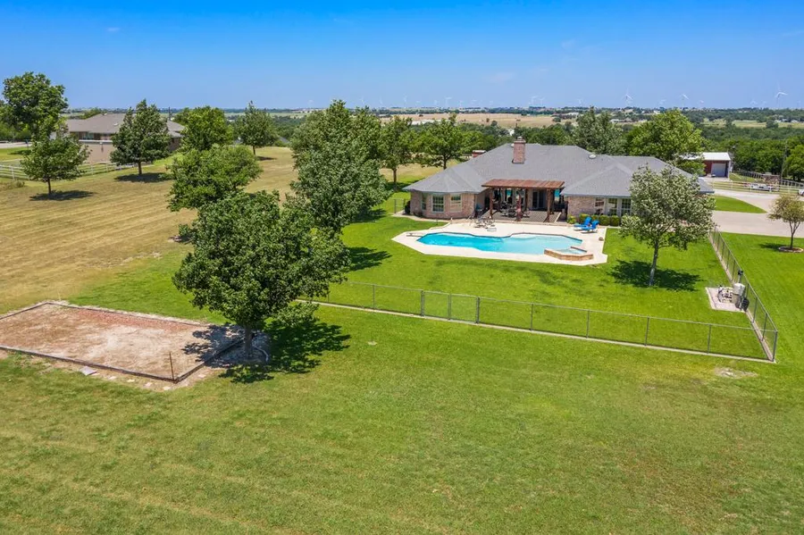 'DISTINGUISHED ESTABLISHED 2.81-AC MUENSTER ESTATE SITTING ON HILL OVERLOOKING PEACEFUL COUNTRYSIDE'... Custom 1-Owner* 1-Story* 3,689+ SF* 4 Bedrooms* 4 Full Baths* 3+ Car Garage with Hot-Cold Water* 3 Living-Great Room with Fireplace, Wall of Built-Ins, Wet Bar* Game Room with Wet Bar, Outdoor Access* Sun Room* Well-Equipped Island Kitchen with Custom Cabinetry, Breakfast Bar* Formal Dining* Morning Room* Sumptuous Master Suite with Sitting Area* Updated Master Bath with Garden Tub, Separate Shower, His-Her Dressing Areas, TX-Size Shower* 2 Bedrooms with Jack-N-Jill Baths* 4th Bedroom Suite, Built-Ins* Outside Oasis with Pergola, Gunite Diving Pool-Attached Spa, Firepit Overlooks Gorgeous Sitting Area* Well* All Electric* 2 Hot Water Heaters* Zoned H-A* ALL BATHS HAVE BEEN UPDATED.