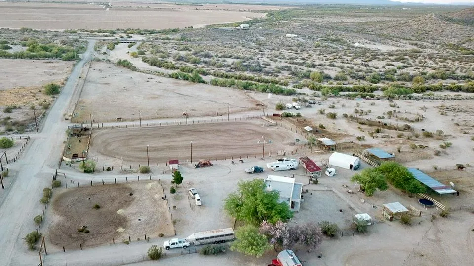 This turnkey 10+ acre horse property in Salome, AZ is fully equipped and ready for ropers, horse trainers, riders, and western lifestyle enthusiasts. The Santa Fe-style 2 bed, 2 bath home is being sold fully furnished and features a fenced backyard, dog kennel, and detached garage. The property includes a 300' x 180' lighted arena with full team and calf roping setup, multiple pens with shades, two round pens, irrigated pasture, covered hay storage, a cowboy tack room, and two RV hookups. Ride for miles with direct access to BLM land. Also included: tractor, drag, and water truck. With a private well and recent upgrades to pump and tanks, this ranch is as functional as it is scenic. Located under an hour from Wickenburg, and just minutes to local jackpots and the equestrian event centers, this is a ropers, barrel racers, and horse trainers' dream come true!