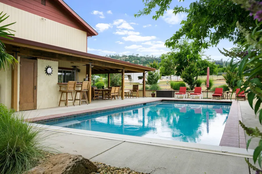 Head out to the covered porch and grab a rocking chair to watch the kids play on the expansive lawn next to the horse pasture. Time to cool off in the pool? No problem. Settle comfortably into your chaise lounge, under overhead fans, while your friends grab their favorite beverages from the cabana bar. This is the quintessential family home. This comfortable 4.73 acre estate boosts a 2464 square foot, 5 bedroom, 2.5 bathroom home with a wrap around porch on three sides of the house. Tucked into the far reaches of the prestigious English Hills area, the quiet and openness beckons you home from a long day at work. The bonus is the location! This property is ideally located between San Francisco and Sacramento, immediately off the I-80 corridor, in Vacaville, CA., making it possible for Bay Area and Sacramento commuters to call this paradise their home.