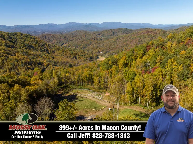 399+/- Acres located in Macon County. Boasting two charming cabins, elevations of up to 4,000 feet, creek frontage and breathtaking panoramic views! Privacy is a key feature of this property, creating a tranquil retreat away from the hustle and bustle of urban life. The property shares a border with the U.S. Forest Service, enhancing the sense of seclusion and providing access to additional natural amenities. With multiple build sites scattered across the property, this presents an opportunity for the development of your dream home or additional structures. Miles of well-maintained roads span across the property. Whether you're seeking a private sanctuary, a potential development site, or a recreational retreat, this 399+/- acre property in Macon County offers a rare combination of natural beauty, convenience, and versatility.