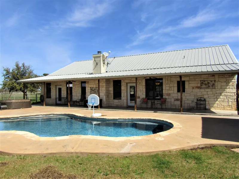 Beautiful, custom built limestone exterior home situated on 10 acres just minutes east of Sonora, TX. This property has a lot to offer. The exterior is completely fenced with net wire fencing, there is a metal barn ideal for show animals, green house, in-ground pool, metal gazebo with outdoor cooking area and a privacy fence around the backyard. Also included is a pool house with full bathroom which is an ideal game room as well. The 1 car garage has ample storage and works well as a shop and attached to the garage is a 2 car carport. There is a large covered patio on both the front and back of the home. Interior amenities include vaulted wood ceiling, tiled floors, wood burning fireplace, wood flooring in the master suite and a garden tub. This property has a lot to offer and is a great property with acreage outside of Sonora.