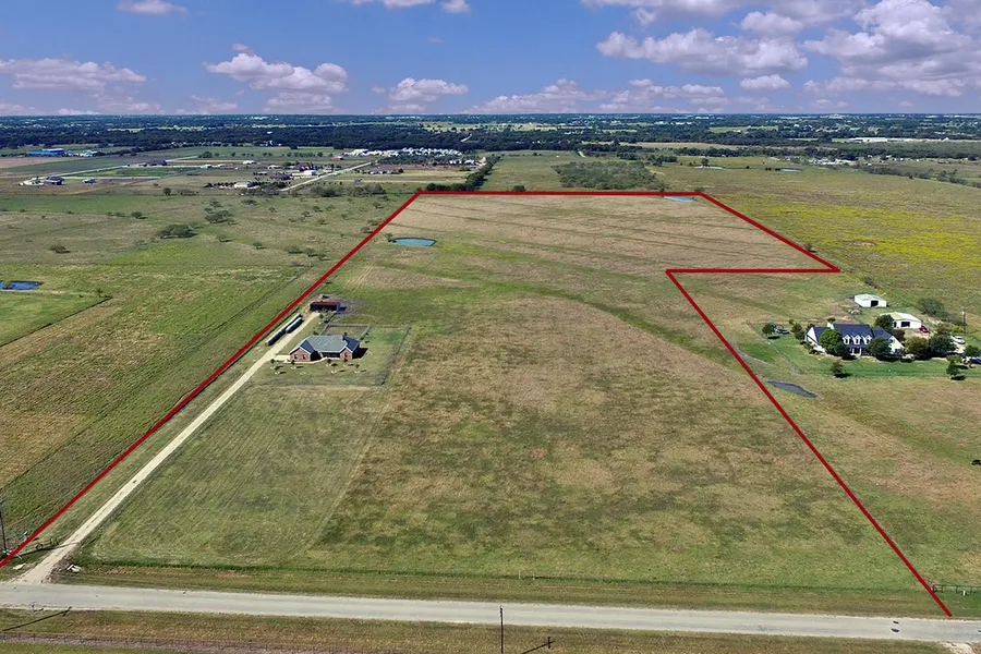 This 35-acre property currently features a newer 3BR brick home, a livestock/storage barn, two ponds, and fenced, ag exempt acreage.