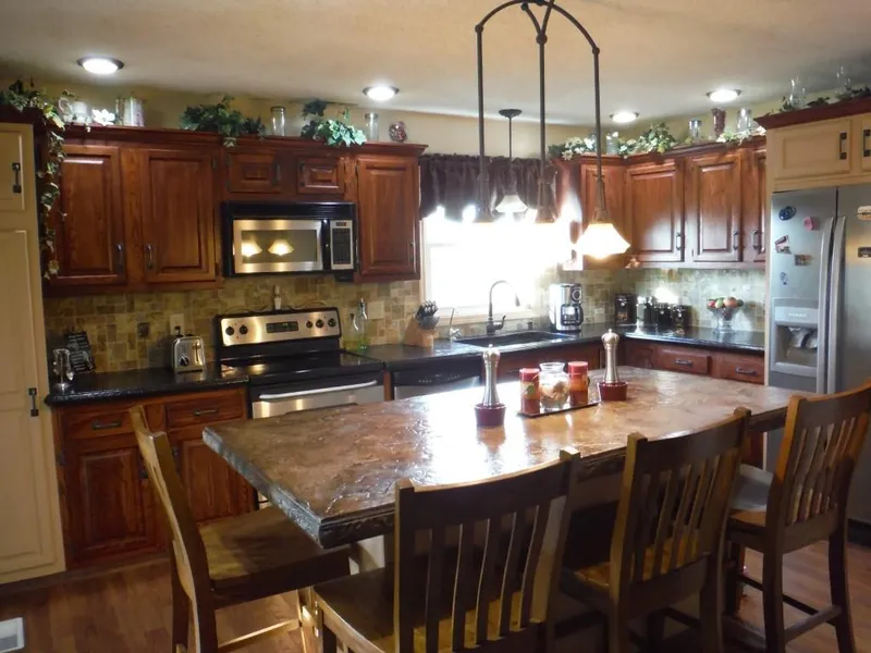 Well maintained all electric ranch home on 5 a. m/l on hardtop road. Has 2 non-conforming bedrooms in basement. Built in outdoor grill and hot tub on large wraparound deck. Many updates. Concrete countertops. Kitchen island. Wood stove in family room. Electric fireplace in LR. Water softener. Heat pump. 48X30 metal building with 14'9" entrance. 20X16 storage shed. Close to golf course and Perry Lake activities.