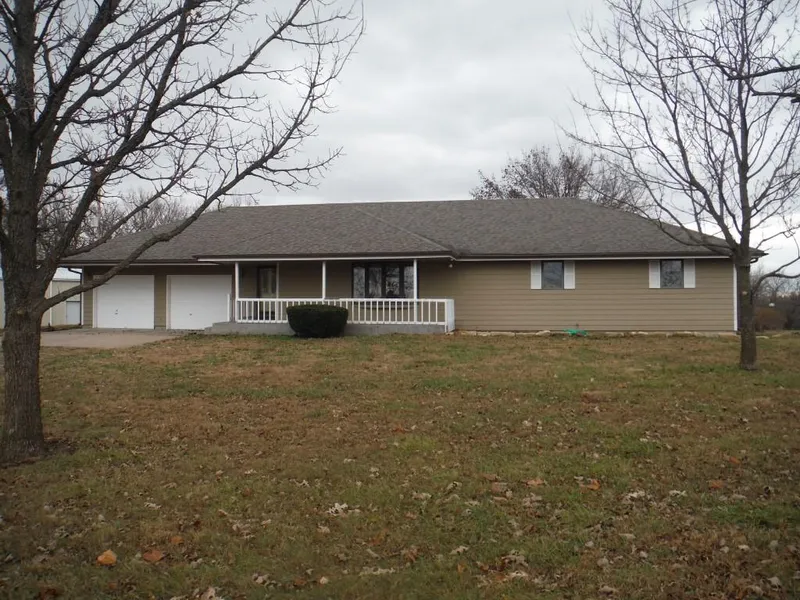 Ranch home on 12 a. m/l with attached garage plus 2 car detached garage and large 60X40 metal shop building with concrete floor. Large Living room. Nice sized bedrooms. Full unfinished basement. Sun room. Deck. Pond. Timber. Hardtop road frontage.