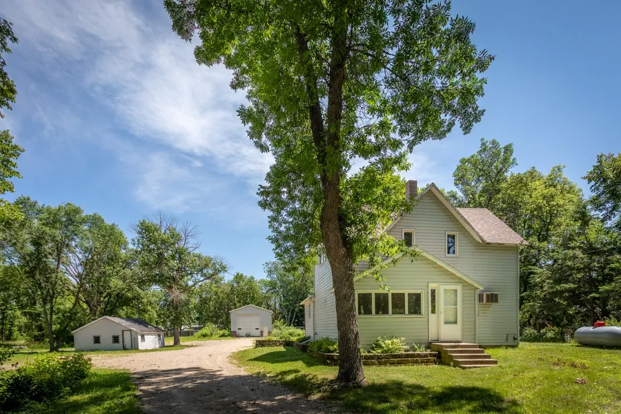 Tucked back from the road sits this 1 1/4 story home on 4.01 Acres. Privacy but close to town. This home features updated upper level with 3 bedrooms on one floor and 1/2 bathroom. Main floor features open kitchen and dining area and main floor laundry. On the outside-enjoy 4 acres close to town, 2 stall attached garage and large shed that is insulated and heated. There is plenty of room for toys here! Agent is related to seller.
