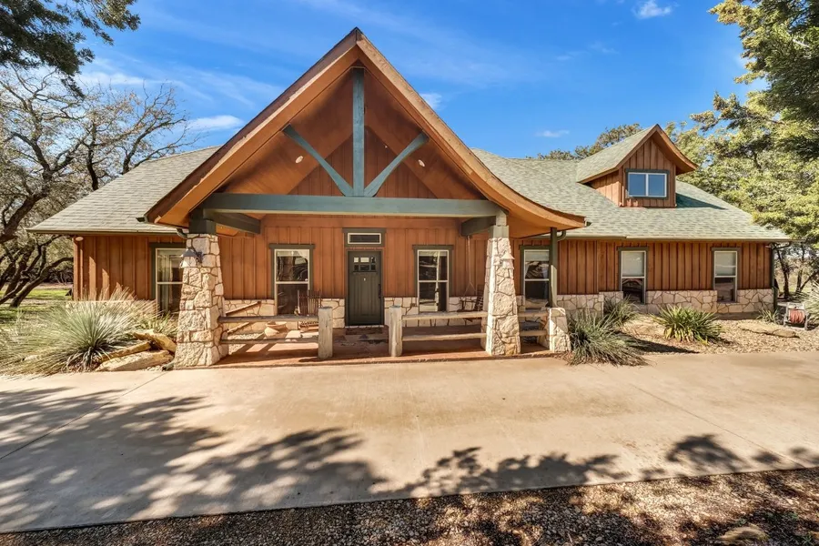 Have you been looking for that sprawling Texas home located near water? If so, here it is at Possum Kingdom Lake! This FULLY FURNISHED rustic one story 4 BDR, 2 BATH ranch home oasis is nestled on 4 acres with a myriad of established oak trees for optimal privacy and seclusion. The property is alive with all sorts of animals including owl, turkey, roadrunner, and deer. You will love hanging out in the backyard hot tub and covered entertainment center with fireplace and TV. Ideal for entertaining lots of friends and family or just escaping the craziness of everyday life. Extra acreage for building a secondary building or the outdoor oasis that you have been dreaming of. Located in a gated development, you have full access to the upscale amenities including the gorgeous clubhouse infinity swimming pool, fitness center with commercial grade equipment, lake cabin with dock and boat storage and community pond. This is a great time to buy to be ready for creating family memories this summer!