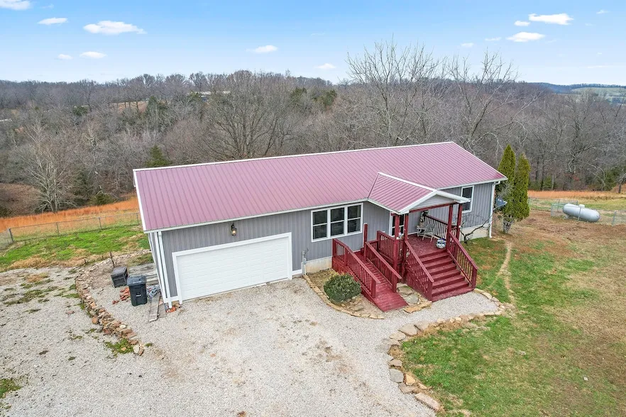 Quality-built walk-out basement home with Large covered porch and Beautiful Country views. You will love all the cabinets for storage & counter space, in your huge kitchen that has newer LG Appliances. With 2 living areas & bonus room make this home a great option for extended family/ In-law accommodations. HVAC systems are only 2 years old, keeping you cozy & comfortable all year-round. You will love relaxing on the huge cover deck watching all the gorgeous sunset, wildlife & nature just outside your back door! Easily to keep clean with Vinyl plank flooring & tile throughout. Very Nice 4 acres. Attached garage ensures no scraping windows in the morning! Peaceful setting to soothe your soul. Only 1.7 miles to Hwy 60, for easy access to restaurants, shopping & work. *Optional 14 x 32 portable Outbuilding is perfect for all your Hobbies or side work & can be purchased for an additional $25,000.
