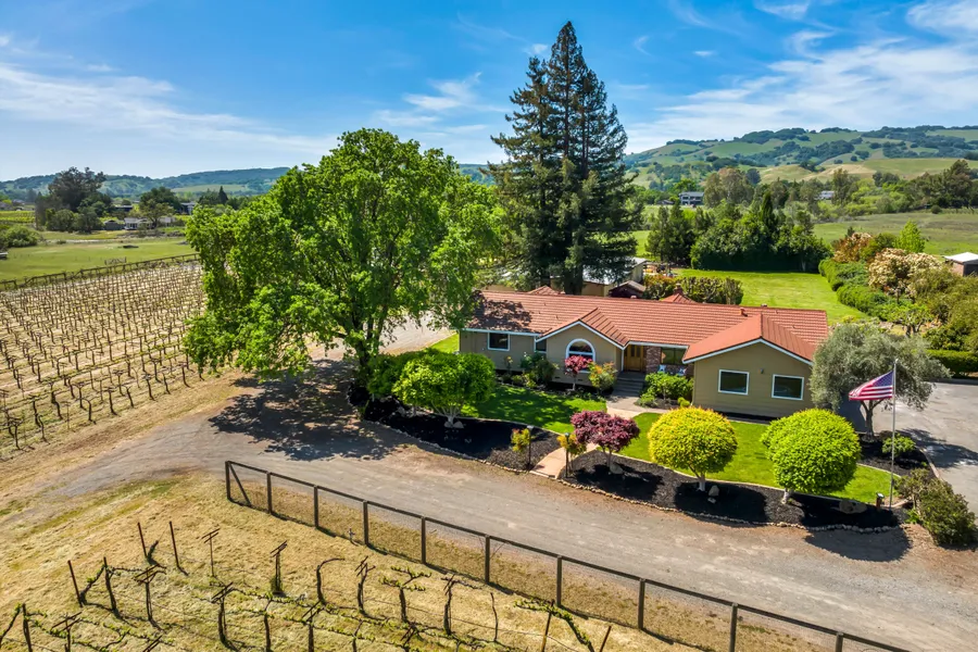Pastoral views from 4+- acre valley floor property on Sonoma's desirable westside apx. 5 minutes to Sonoma Golf Club. A country lane is the setting for this charming single-story home nestled into gardens. 2600+-sf with a marvelous entertaining sunroom open to the gardens and pool patio. Spacious 3bd/2.5ba, with vaulted ceilings, hardwood, chef's kitchen, metal roof, oversized 2-car garage. BARN: 2600+-sf, 20 x 30, sliding door, heat & A/C, 220 AMPS, shop, storage, gym, wine cellar and more. Includes 1.25+- acre gold medal winner Sonoma Valley Pinot Gris; fruit trees: apple, orange, fig, plum, olive. 25KW solar power, 37+- gpm well, fully fenced, 2 entries with custom steel gates. Minutes to all with a country feel, apx. 45 minutes to San Francisco, 7+- mintues to Sonoma Plaza.
