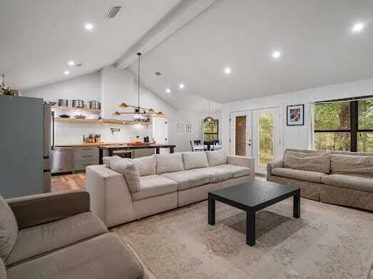 Step into luxury with this stunning 4-bedroom, 2-bath Ranch home, where quality craftsmanship meets modern comfort. Sitting on 4.05 acres, this beauty is featuring foam insulation and a new metal roof. The residence is built for efficiency and durability. The chef's kitchen is a culinary masterpiece, outfitted with commercial-grade appliances, a farmhouse sink, oak wood countertops, and soft-close cabinets. Solid pine shelving adds warmth and character, while luxury vinyl flooring throughout ensures both style and practicality. Retreat to the spa-like bathrooms, where quartz countertops and marble finishes set the scene for relaxation. The master suite boasts a double vanity and elegant detailing, making it a true sanctuary. Enjoy cozy nights by the wood-burning fireplace or host gatherings around the outdoor firepit. Recessed lighting, vaulted and tray ceilings add sophistication, while...