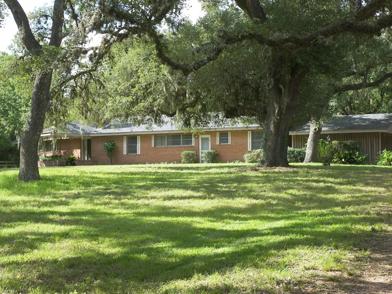 This 4.1 acre tract has been selective cleared with large Oak Trees in the front yard. The 1958 Brick/Siding 3 Bedroom, 1 1/2 bath Home with 2-car carport is located near the back of the 4.1 acre tract of land. The surrounding property around the 4.1 acre tract is heavily wooded. There is a water well and septic system for the house. A new Composition Roof was installed in 2012, a new AC unit was installed in 2017. There is a nice gravel driveway leading up to the house from Hwy 90. The house is nearly hidden from Hwy 90. The House needs updating/remodeling.