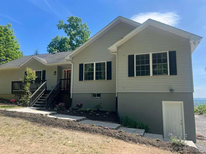 Privacy. Exclusivity. Luxury. Convenience. Atop the driveway to 345 Valley View, with sweeping panoramic eastern views of the City of Kingston, the Taconic Mountains, all the way to The Berkshire foothills sits this majestic owner-built, lovingly maintained contemporary ranch home. The long list of conveniences and features speaks to its quality contractor owned and built construction. (2004) Gallis Hill is an exclusive “No Exit" community, quiet, safe, close to Kingston's and Route 28's amenities and conveniences. On the main floor, the new Florida sunroom will enhance early morning coffee sipping, encourage time for quiet moments, provide a tranquil, sunny exercise/yoga space. This new sunroom has 15' new super-efficient Anderson windows, zero clearance clean-burning propane fireplace, a mini-split heating unit, fresh, new vinyl plank flooring, sliding French doors to the upper deck. There's new, fresh vinyl plank flooring. The spacious kitchen and dining area provide comfortable space for family meals and entertaining. Washer/dryer space is by the kitchen. The present living room could be the formal dining room. Present dining area could be informal living area. There is a clean burning propane fireplace open to dining and living room spaces. The three spacious bedrooms with plush carpeting are at south end of first floor. The huge main bedroom has comfortable jacuzzi bath, spacious walk-in closet. Access to the pull downstairs to the full attic is from this closet. Main bedroom French doors open to upper deck for early morning sunshine. Handicap accessibility is possible with alterations to the lower-level family room and/or upper-level ramps. There are two deck levels for entertaining with lower deck level direct access to the above ground pool. No ladder to climb in and out of pool. There are many enhancements in this contractor owner-built home. There are three steel I-beams across the width of the house. Garage and lower-level finished family room have 9-foot ceilings. Spacious finished family room is accessible by interior stairs and garage entry, providing handicap accessibility potential. This family room is an entertainer's paradise. There’s an 8' bar with sink. Roughed-in space below the bar is ready for an under-bar refrigerator. Surround sound speakers stay and are ready for installation. The woodstove sits in the black ceramic tile alcove. Utilities and oil tanks are neatly and conveniently located beneath the interior stairs. The triple car garage is oversized, spacious and heated with workshop area (970+/-sqft). There's plenty of electricity. The backup generator supports its own electric service to keep all essential services and utilities powered when activated. The firepit is ready for fireside storytelling, s'mores, year-round evening gatherings. There's a stream in the forest to the west. Getting to it is a "walk in the woods". Plenty of storage in the large full height attic and beneath the decks.