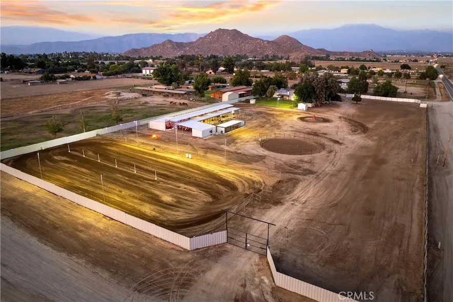 Welcome to this fully remodeled equestrian ranch on 4+ flat, usable acres in desirable West Hemet with A-1-5 zoning. One of the few properties in the area that offers this highly sought after zoning opportunity. This 3 bed, 2 bath 1,594 sqft ranch-style home was completely updated in 2016 with new electrical, plumbing, HVAC, dual-pane windows, LED lighting throughout, and stylish wood plank porcelain tile flooring. Enjoy a custom-designed kitchen with high-end custom cabinetry and modern finishes, updated bathrooms, and a finished garage or flexible space. The property is fully enclosed with a 6 tall solid PBR panel fence and features two 20 double gate entries with automatic openers for easy RV and trailer access. Equestrian amenities include 8 oversized 20 x30 barn stalls, a guest suite and full bathroom, a fully equipped outdoor kitchen/entertainment space, 100 x200 fully lit arena, 60 round pen, 4-horse hot walker with watering system, a 750-gal septic tank for the barn, and RV hookups. This private, turnkey retreat offers top-tier infrastructure, premium finishes, and exceptional functionality for equestrians, hobby farmers, or rural lifestyle seekers. Please see attachments for a list of all the upgrades this incredible property offers along with an inclusions and exclusions list.