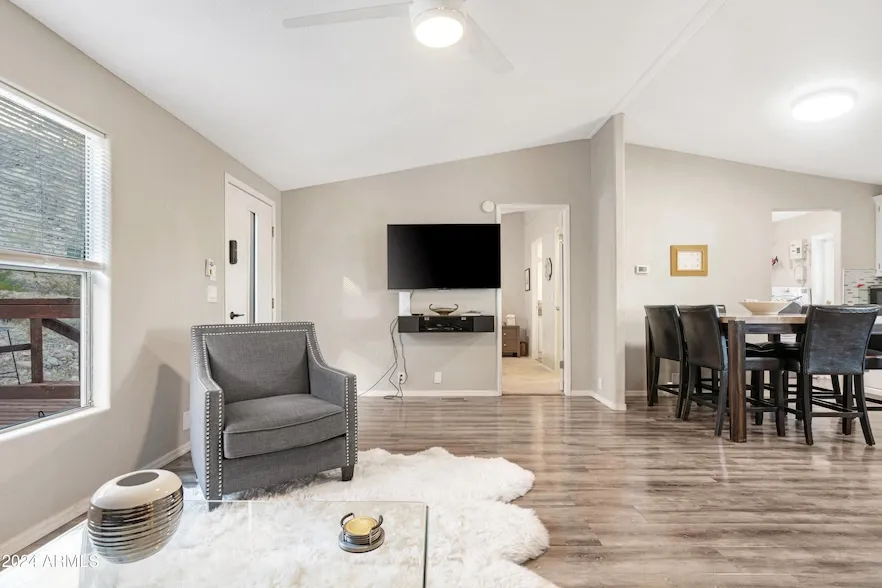 Fully furnished ,Panoramic Views, Endless PossibilitiesThis 4-acre w/ 3 bedrooms and 2 bath mountaintop retreat offers unparalleled views of the valley, stretching all the way to Table Top Mountain. The flat buildable area is perfect for your custom home, surrounded by the serene beauty of Thunderbird Farms.