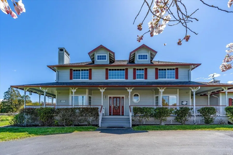 Welcome to Serenity Springs, an enchanting country estate nestled in Sebastopol. Discover the allure of this mesmerizing 4-acre property with breathtaking views abound. Meticulously landscaped grounds adorned with vibrant native plants and 5 captivating waterfalls create a symphony of tranquility, designed by the renowned Judith Lowry Larner. Explore 1/4 mile of meandering paths, offering different views and secluded benches for moments of reflection. The well pumps 55 GPM! Don't miss the inviting redwood grove, perfect for picnics. Enjoy upgraded amenities including a newer furnace, hot water heater, and heat pump. With a backup Generac generator & 500-gallon propane tank, peace of mind is guaranteed. Marvel at the captivating Nordic dragon statue "Eragon" by talented artist Dayvon Harrison, proudly displayed on the shed. Relax on the wrap-around porch & swing, soaking in the serene surroundings. Inside, find warmth in the cozy fireplace of the formal living room and the spacious kitchen with a large island and abundant storage. The primary bedroom offers a private retreat with a large sitting room or office. Completing this exceptional property is a 1,100-square-foot, three-car attached garage. Indulge in the symphony of elegance and tranquility at Serenity Springs.