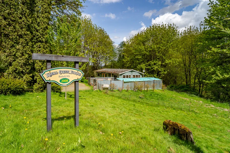 Experience Knoll Creek Farm, a secret gem of 4.2 acres conveniently located within just 1 mile from both I-405 and Downtown Bothell. Gorgeous property with building site situated on a SUNNY knoll that is so TRANQUIL and PRIVATE. Imagine listening to birds sing while you enjoy the full sun on your deck, yet you are snugly nestled amongst the surrounding trees for privacy. Knoll Creek Farm was established as a small farming site in 2009 where chickens and goats were raised amongst the vegetable gardens. Quick stroll to quaint Main St Bothell. Cedar Park Christian School and Brickyard P&R are close by. Award winning Northshore Schools. Discover this picture-perfect property and build your dream home on this magical site fit for a movie set. Value in land.