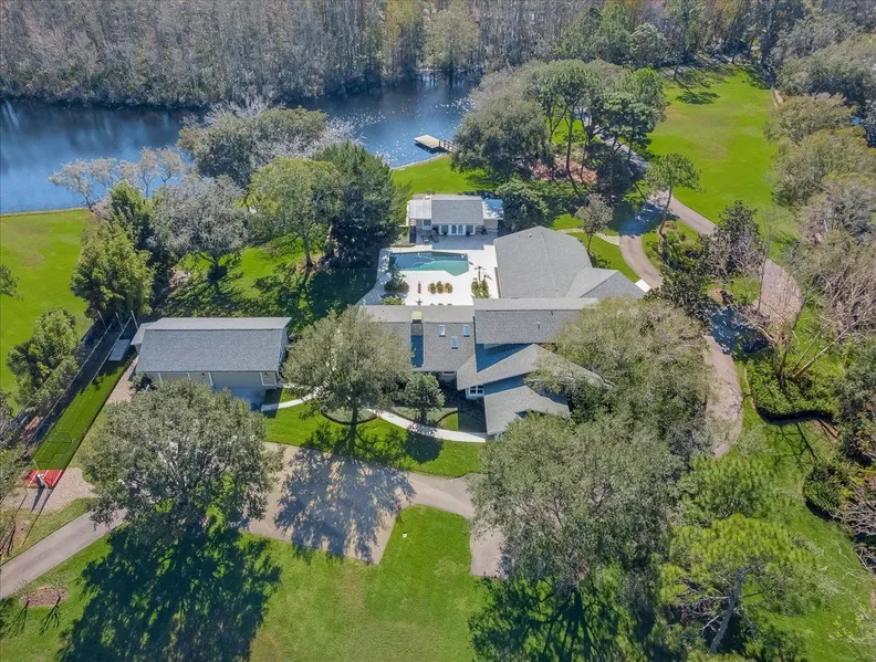 Truly one of a kind Southern Living style home with separate pool house on 4.2 impeccably manicured acres, overlooking a serene spring fed lake. With a private entry, located at 2801 Bryan Lane, this home makes a dramatic first impression while offering privacy and security. As you meander up the long, stately drive, all you see is the vast green lawn, meticulous landscaping, shady trees and a pristine lake. Home has a new 2019 roof and four new ACs in 2016, 2018, 2019 and 2021. So many extras! Updated, Waterfront, Separate Pool House, Large 4.2-acre lot, No HOA, Close to A+ schools, Batting cage (could be RV or boat storage), Endless Storage, Oversized 3 Car Garage Gorgeous gourmet kitchen with double islands, Viking gas stove, butler's pantry, wine refrigeration. Enormous laundry room and mudroom, and rich, gleaming brushed Hickory hardwood floors. Formal dining room with built-in cabinetry and crystal chandelier can host all your holiday gatherings. Family room has cedar ceilings with remote skylights and custom shelving along with the large wood-burning fireplace. Three sets of French doors lead to the vast patio and pool area. Large den or bedroom with two more closets and an updated marble bath with access to the pool area is just off the family room. The home's beautifully updated interior includes a luxurious master suite with marble bath including double sink vanity, double head shower and freestanding tub. The suite also has French doors to the patio, black-out blinds and curtains, double entrance walk-in closet and second office. Upstairs boasts two large bedrooms each with double closets with built-in shelving and an updated bath with double sink vanity and large walk-in shower. The front room has many possibilities including pool table or baby grand piano. A spacious office with many windows will make working from home a delight. The home's pool house is separated from the main house by a beautiful courtyard saltwater pool and travertine patio. Perfect for entertaining with built-in cabinets, the pool house is equipped with refrigerator, full bath and dynamite lake views fully equipped for long term guests. A built-in grill with stone and granite makes for fun by the pool. Oversized 3 car garage with epoxy-coated floor and additional outdoor parking space for cars or boat. A full-size batting cage and extra attached shed are near the garage. This is a property you'll long to come home to. Room to roam and room to add on...need a big garage for your car collection? Workshop? No HOA! This home offers a rare combination of elegance, comfort & style surrounded by lush green landscape & nature but close to everything! Less than mile to East Lake Middle & East Lake High School highly desirable A+ schools. There isn't a room in the home you won't love! Easy in-law quarters, Perfect for entertaining, this is a must-see spectacular estate home. Serious inquires only, call for your appointment today.