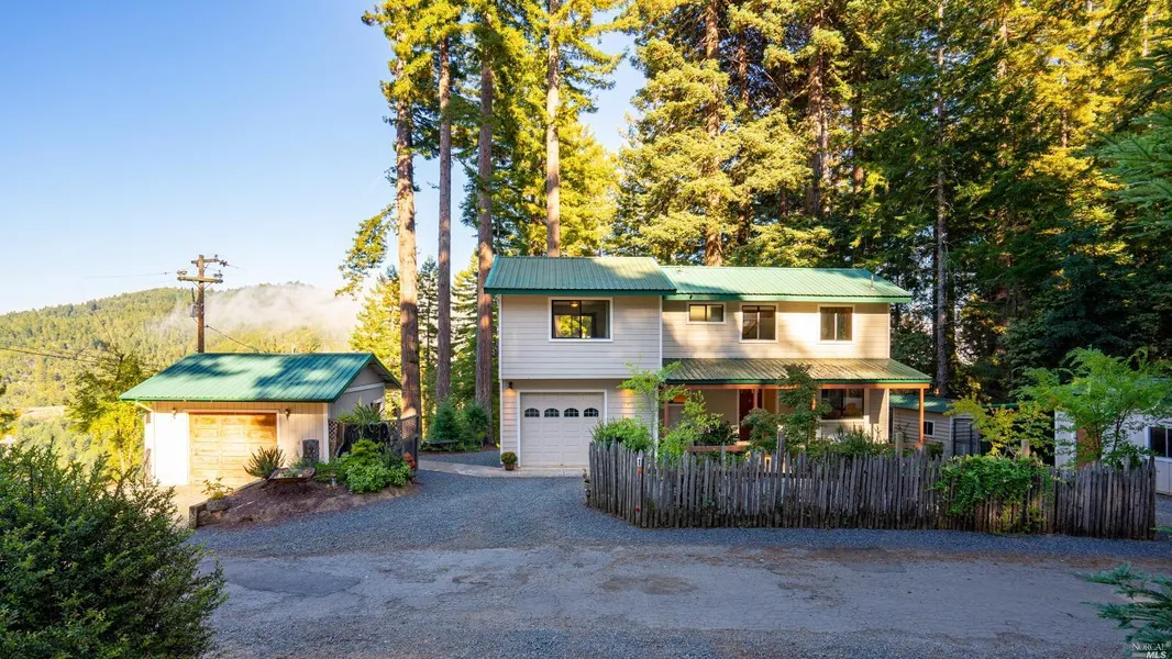 Searching for a private retreat w/ gorgeous views overlooking a valley filled w/ redwoods & a place to get away from fast paced everyday life? Or looking for a remarkably cared-for homestead to plant roots & thrive for years to come, you've found it! 4.22 acres in Wine Country, featuring 2,029 square ft, 2 beds w/ possibilities for more, 2 bths, vaulted ceilings, detached AND attached garage, fruit trees, outbuildings, & plenty of parking. Kitchen is recently updated featuring portable island, double oven, & stainless steel appliances. Spacious living room offers plenty of natural light, cathedral ceilings, & a cozy wood burning stove. New flooring throughout. 2 large bedrooms upstairs, one being loft style that can easily be walled off if desired. Enjoy beautiful views from the deck & the cloudlike fog that passes through the valley on occasion. The ideal vacation rental, near wine tast...