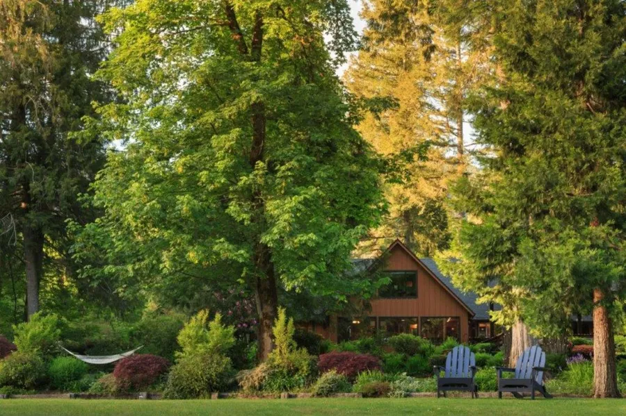 Fabulous riverfront property, beautiful gardens and rustic charm.Eagle Rock Lodge is a privage fishing lodge on over 4 acres on the McKenzie River. It boasts 400 feet of riverfrontage with beautiful landscaping. The main lodge has 5 bedrooms, all ensuite, great room with woodstove, additional bath, and a fabulous kitchen with a river view. The carriage house has 4 bedrooms, all ensuite. Property has a separage launtry facility. There is a separate caretakers home with 2 bedrooms and 2 baths, full kitchen and river view. Main lodge and carriage house come fully furnished. Trout fishing in your own back yard!