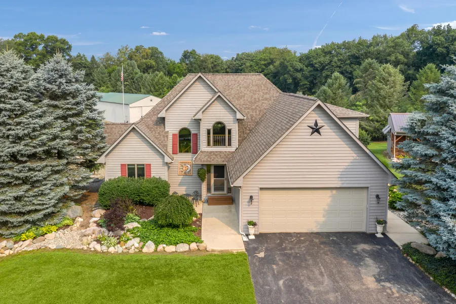 **Open house cancelled on 01/16/2022** You will love this custom built home on 4.25 acres of pure serenity. There are so many details to love in this home that was made for entertaining. As you walk through the front door you are welcomed by the large living room with vaulted ceilings. The living room flows into the eating area and the kitchen which has handmade cabinets and granite counters. This area then flows into the huge family room with 21 foot vaulted ceilings with tongue and groove knotty pine, built in entertainment center that holds an 80 inch TV and wood stove with stone wall. The spiral staircase leads to a loft perfect for an office or a reading room. The primary bedroom is on the main floor and has vaulted ceiling, bathroom, large walk in closet and private deck