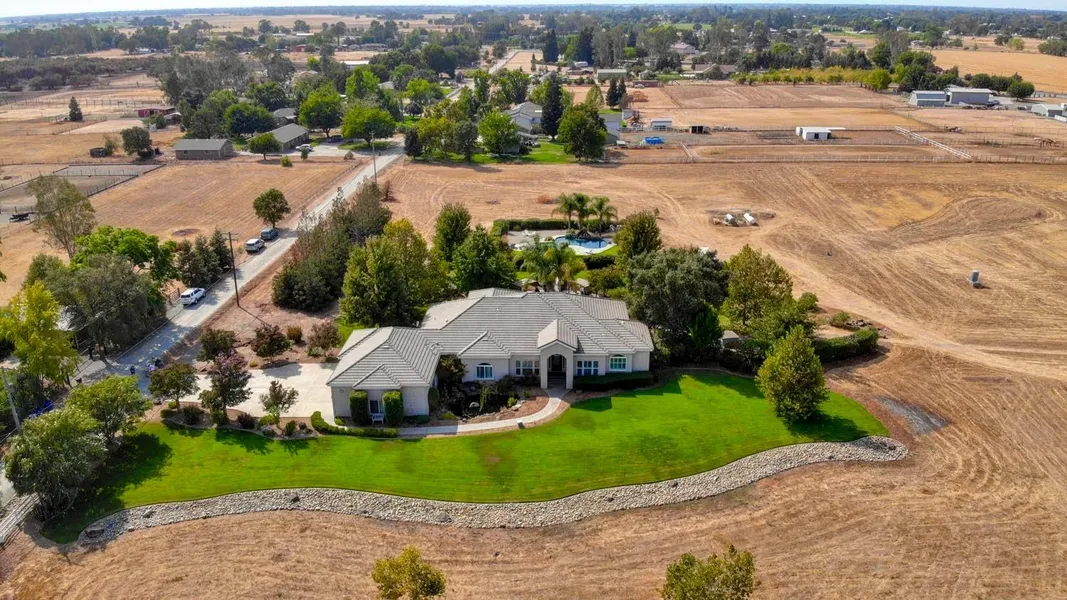Welcome home to this country estate! One-of-a-kind custom-built home nestled on 4.26+-acres. A Spectacular SINGLE LEVEL, built w/2x6 construction, 4 bedroom 3 1/2 bath has many upgrades. Upon entry the dining rm tile has granite inlay, front office with glass doors, living rm has access to outdoor patio. Gourmet kitchen with stainless steel appliances, granite counters,dual dishwashers,pantry,sink in island dining bar, trash compactor,Lg. family rm. w/fireplace, remote master suite w/outdoor access, concrete vanity w/dual sinks, soaking tub and separate walk in shower stall, two walk in closets, additional bedrooms have attached baths, laundry room has storage galore & sink. Oversized 3 car garage, whole house fan, 10ft ceilings, 8 ft. doors, outdoor is an entertainers delight with stamped concrete,covered patio, 2 pergolas, built-in pebble tech pool w/waterfall, dog run, pond in front has waterfall. Sand beach area w/fire pit, putting green, horseshoe pit and much more.