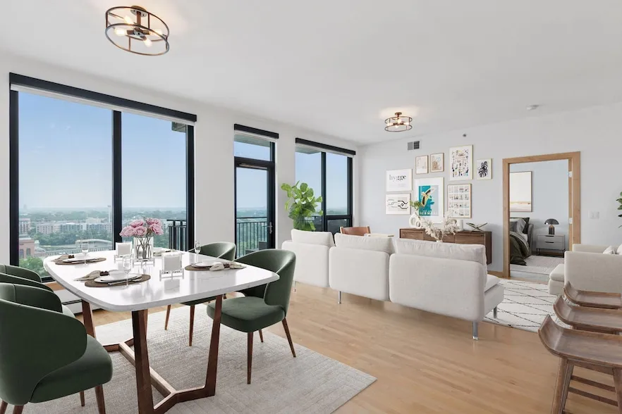 Experience upscale urban living in this stunning 10th-floor, 2 bedroom, 2 bath condo in the highly sought-after Legacy Building of Minneapolis. Enjoy breathtaking panoramic views of the Mississippi River, Stone Arch Bridge, and cityscape from your private perch above the vibrant Mill District a neighborhood known for its historic charm, scenic riverfront trails, and cultural landmarks. The open-concept layout is designed for both comfort and style, with high-end upgrades throughout, a sleek modern kitchen, spacious living areas, and two dedicated garage parking spaces a rare and valuable amenity. The Legacy spoils residents with resort-style amenities: pool, hot tub, sauna, fitness and weight rooms, lawn bowling, fire bowls, community and game rooms, golf simulator, pet spa, business center, and 24/7 door staff and onsite management. Located just steps from US Bank Stadium, the Universit...