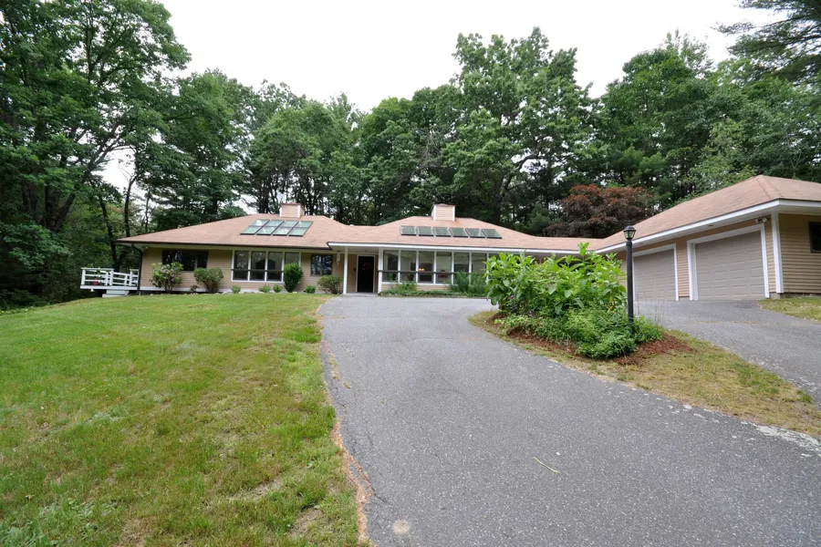 Is one level living on your dream home checklist? Do you desire privacy and convenience? Then look no further than 343 Depot Rd. Located on one of Boxborough s most scenic roads, this light-filled 3 bedroom, 2 bath Contemporary Ranch is tucked away on 4+acres. Relax with a morning coffee on the master suite deck, while enjoying the natural beauty that surrounds you. Inside, easy living and convenience are yours with an open floor plan that lends itself to entertaining. Both the living room and a family room/sunroom offer walls of light, skylights, and fireplaces. The inviting dining room shares a fireplace with the family room/sunroom. The bedrooms are smartly situated to offer privacy. Just steps outside the kitchen is a bonus room ideal for an exercise room/office, A two-car garage with ample storage above and a separate shed complete this private oasis. Enjoy the top-rated Acton-Boxbo...
