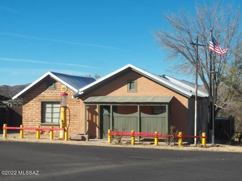 This Historic building, once the only cafe and gas station in Arivaca, has been expertly remodeled and transformed into a cozy single family home. Major improvements include reconstruction of roof tresses to create a vaulted ceiling in the great room, refinishing the stucco over the original adobe; installation of a metal roof, HVAC mini split, tankless water heater, new upgraded electrical service and new water lines. A new metal roofed rear patio overlooks the fenced 3.5 acre pasture. The kitchen features a Stainless Steel refrigerator and sink, gas cooktop, oven, new concrete counters and cabinets. New dual-pane windows traverse the great room and new laminate flooring leads into the bedroom and full bath.