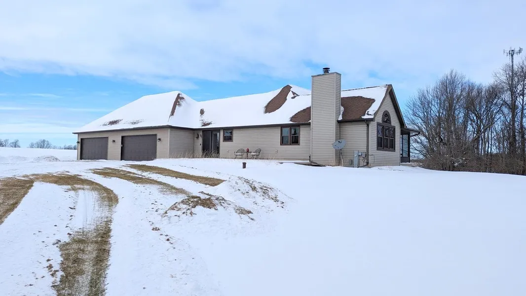 PERCHED ON A HILL in the country w/beautiful views! Custom built, one-owner, well maintained hm on 4.32 ACRES, partially wooded w/quick access to Fond du lac, Chilton or 15 minutes to Fox Cities! Have toys? 6 car spaces under 1 roof! Walk-in coat closet as you come in from outside. Huge open concept w/dining-kitchen-living rms. An abundance of counter space & all appliances included. Patio doors out to super-sized patio w/4' frost wall.. maybe a future sunroom!? Knotty pine & vaulted ceiling in LR w/gas FP. Off front door is a screened in porch.. LOVE IT! UPDATED full bath PLUS a primary en suite that is MASSIVE! Walk-in closet, DBL sinks, & walk-in shower! LL has rec rm & storage galore. Steps from garage to LL, bonus rm above garage. VERY PRIVATE! Endless updates. No addl land avail
