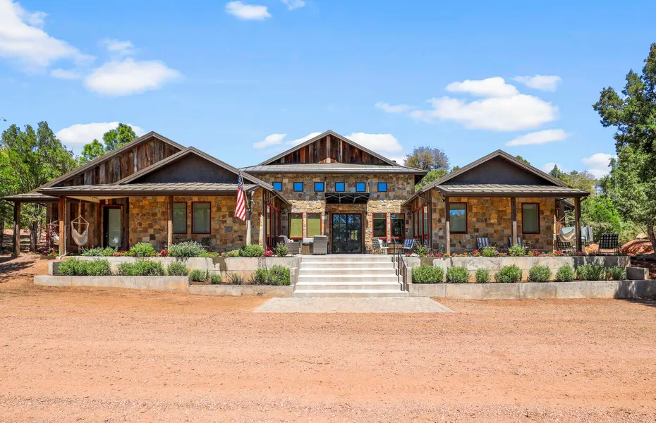 Discover this unparalleled executive estate, featuring a stunning 4,334-square-foot home and an 1,150-square-foot guest cabin, all bordering the pristine National Forest. This property offers the perfect balance of seclusion and convenience while in the Payson city limits, with top-rated golf courses like Chaparral Pines and The Rim Club just a stone's throw away. Designed to accommodate up to 30 guests, this property is ideal for a VRBO, corporate retreat, or family getaway. The main house boasts an open-concept great room, including a gourmet kitchen, expansive dining area, and spacious living room. The master suite offers a luxurious en-suite bathroom, and the additional four bedrooms each feature their own en-suite bathrooms. Two versatile rooms in the main house can easily be used as additional bedrooms or offices, providing endless possibilities for customization. Both the main house and guest cabin have been thoughtfully updated, including brand-new roofs and a host of other upgrades—see the full list in the Documents tab. The property is equipped with both city water and a private well for added convenience. Enjoy outdoor living with multiple spaces to entertain, including covered back patios, an outdoor kitchen, large grass area, children's play area and a cozy fire pit area. This property is being sold fully furnished, making it move-in ready and perfect for immediate enjoyment.
