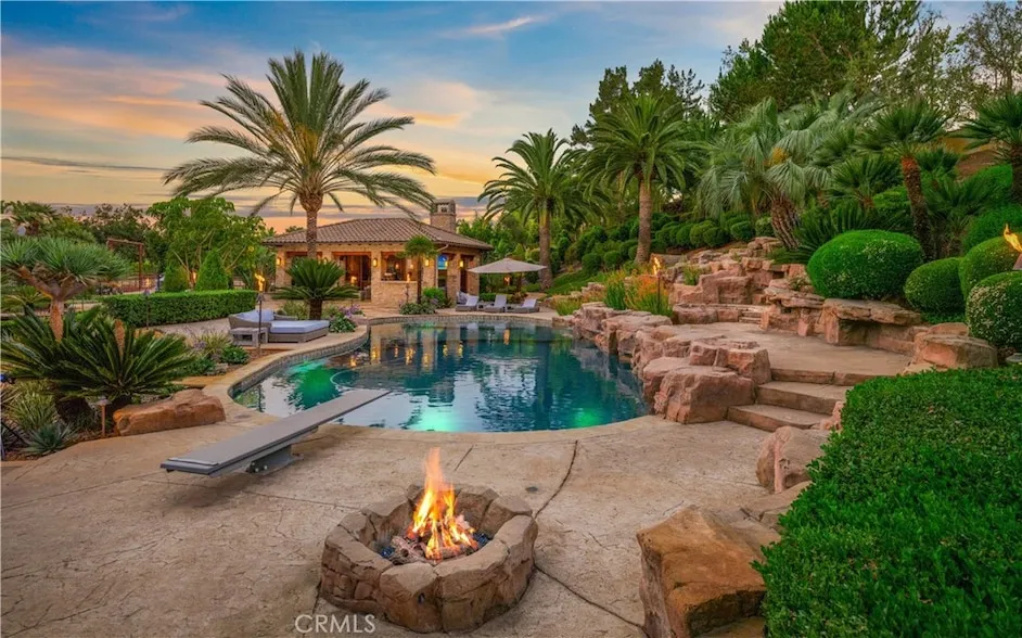 World Class Equestrian Estate in Orange County, only 24 miles from John Wayne Airport offering breathtaking views of luxury estates, beautiful mountains and golf courses. Situated on more than four acres, Coto de Caza offers everything you are looking for! It was the site for the 1984 Summer Olympics modern pentathlon. Coto de Caza attracts equestrians, golfers, tennis players, sport figures and outdoor-loving people. Berkshire Hathaway HomeServices California Properties is offering this well-designed-for-equestrian-use 4.4 acre estate. Enter through two sets of double iron gates down the long paved driveway into a secluded setting. The property boasts sprawling lawns, 100-year-old oak trees and well water for irrigation. The grounds are surrounded by iron fencing and are newly landscaped with mature trees and many specimen plants. The double-door entry opens to the foyer with soaring ceilings and views into the living room with a beautiful fireplace. The two-story home has six large bedrooms each with its own bathroom, two powder rooms and six oversized garages. Enjoy the luxurious primary suite with a gym, large bathroom and beautiful views of the surrounding areas. The comfortable library has wood paneling and a temperature-controlled wine cellar. The spacious family room has a fully equipped bar and opens onto the beautiful kitchen with top-of-the-line appliances and walk-in pantry. The top-of-the-line theater was recently completed. The dining room is the perfect size to host large dinner parties with its convenient butler s serving area. Upstairs is a bonus or TV room for kids or family nights. The elevator and smart-house control system were recently renovated. The backyard resort with its large pebble tec pool, waterfalls, spa and pool bathroom provides a wonderful setting for outdoor entertaining. The large open California loggia with a beautiful hand-detailed ceiling and wood cabinetry opens to a fireplace, built-in BBQ, flat screen TV with surround sound system and comfortable seating for entertaining. For the horse enthusiast, the new 10-stall barn has a tack room, large feed room, fans for ventilation and automatic drinking water for horses. This portion of the property is devoted to equestrian activities with a large arena for roping, cutting, jumping, polo competition, dressage and carriage driving. For special events, there is ample parking for cars and trailers. This is a dream, come through if you are the equine or a competition rider.