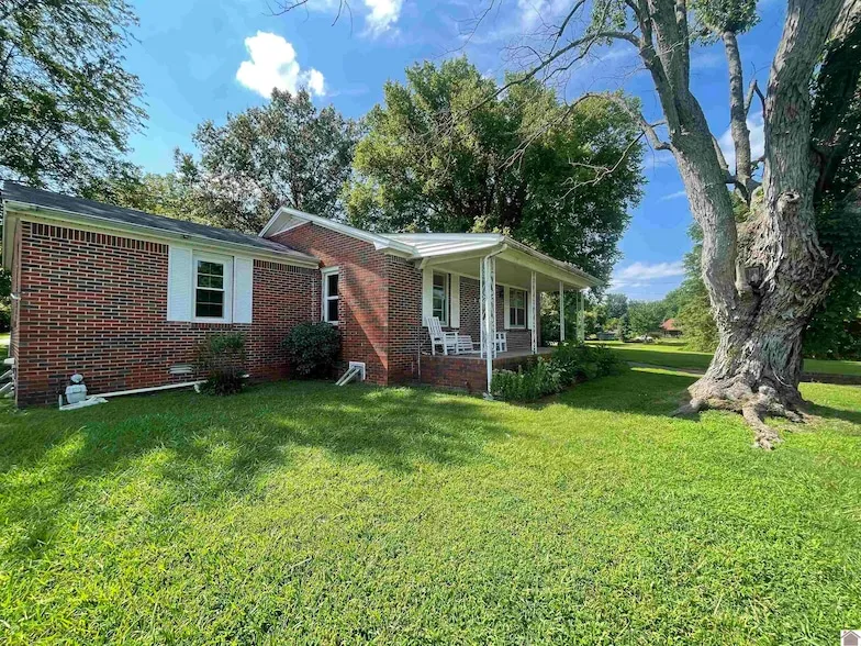 Ranch style home located on approximately 4.4 acres. Interior of home has updated bathrooms, paint and carpet. A wall was removed from the kitchen area and has spacious flowing area from family room. Primary bedroom features shelving ,desk area and bath. Utility room with shelving and spacious storage. Some of the windows have been replaced. Home has two septic tanks. Nice concrete covered front porch. Two driveways one to garage and one behind the home. Storage building included. Back of property goes to 641 N road frontage. This land could be used for commercial property as it faces 641. There is not an entrance onto 641 but Wind Road is only about .3 of mile off of it. BACK on Market Due to Financing. Selling AS IS Home will not qualify for VA,FHA, Rural housing loans