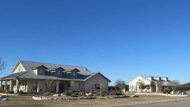 STEEL, LIMESTONE WITH STUCCO, Planned Benefits in Green Technology and SUPERIOR CONSTRUCTION & DESIGNS laid the Foundation for this Beautiful Texas Ranch Style Home. A 40'X60' Master Drive-Thru RV Barn(Loft,Pulley,Overhead Doors), Wrap Around Covered Porches with Limestone Columns for Entertaining, Irrigated Landscaped Gardens,Custom Gazebo AND a 4.44 Acre Private Lot w/Resort-like HOA Amenities. Custom Lead Glass Front Dr. w/Mahogany, Great Room w/22 Ft Ceiling & Switch-Lite Limestone Fireplace, Marsetti Custom Tile Design, Occupant Sensors in Closets, 4'+ Wide Staircase w/steel reinforced Banister (Electricity in-place for a Chair Lift), Kohler Fixtures (Instant Hot Water w/no scald), Hybrid-Car Recharge Station, 6 Zones H/A, Walkways w/Rainbow Rock. Construction Details available. Seller's Electrical Bill Monthly is approx. $100.00 per month. Foam the Advanced Insulation and Zones prevent high energy bills. Gas bills are about $500.00 Annually. Details of Construction and Nursery Stock Lists available.