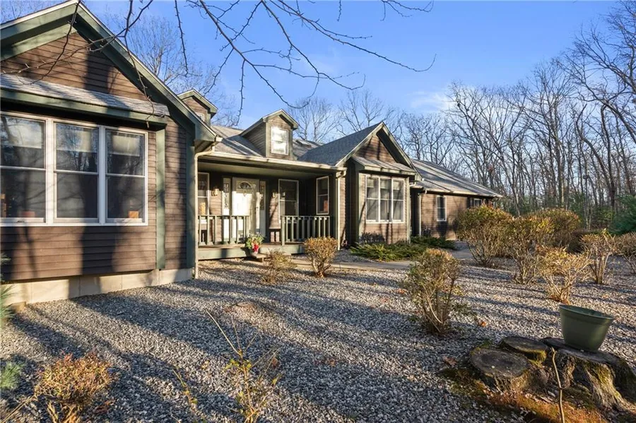 Estate Sale sold AS IS! This well built and cared for 1993 ranch is ideally suited for a variety of buyers. The layout of the house is perfect for aging in place, for a growing family, or for a single occupant who may work from home. Surrounded by wood and nature, this home offers privacy and peaceful tranquility yet is a quick drive to Bryant College, highways, restaurants ,schools, and shopping. A gorgeous floor to ceiling fireplace, cathedral ceilings and skylights make the family room the focal point as you enter this house. A sizable dining room makes entertaining family and friends easy. The large eat-in kitchen has oak cabinets and stainless steel appliances. The master bedroom is large with the master bath containing a stand alone shower and jacuzzi. The master bedroom is located at one end of the house while the remaining two bedrooms and full bath are located at the other end. ...