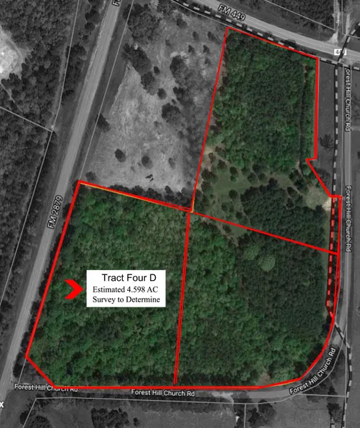 Dream home location alert! Just 11 miles north of Longview in sought after Hallsville ISD, 4.56 Acres on corner lot of FM 449 /Forest Hill Church RD! Are you considering building your dream home? Stop here and check out this beautifully woodedproperty today! Tract 4 D (see plat photo proposal) Other tracts available.