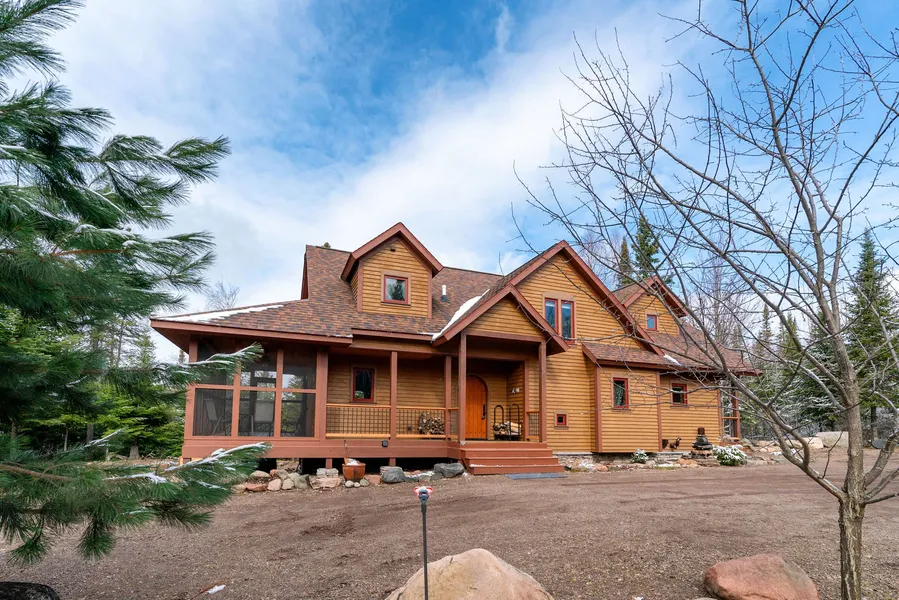 True solitude can be found on Wilson Lake in this stunning Mulfinger, architecturally designed 4 bedroom, 5 bath home that takes advantage of the many attributes of lake living. This exquisite home is tucked away on a gorgeous 4.5 acre lot filled with trails, gardens, and multiple water access points along the 284.17 feet of user-friendly shoreline. The arching, custom-built front entry door is a befitting entrance to this quality built home. The kitchen features stunning granite counters with a backsplash of Palisade Head stones; a live edge bar and ample storage space. You will love spending time in the open concept dining & living room, with the panoramic views, custom woodwork, hickory plank flooring and the one of a kind, massive wood-burning stone fireplace. The main floor laundry doubles as a mud room with an exterior entrance. Make sure to check out the copper fish imprinted sink in the half bath as well as the custom tilework throughout the house. All three spacious bedrooms have private baths and the fourth bedroom has an adjoining bathroom, perfect for entertaining. Enjoy dining outdoors in the screened-in porch, relaxing in the hot tub during a snowstorm or watching the birds from the large front deck. Did we mention the heated garage? It consists of 1,728 sq. ft. with plenty of space for the workshop and toy storage. Wilson Lake is a top-quality walleye lake and known for loon habitat. In addition there are many other area lakes in the surrounding area, incredible trail systems for hiking, mountain biking, ATVs, snowmobiling and is close to many BWCAW access points. Escape to this peaceful retreat where you can enjoy the great outdoors, explore trails summer and winter, or just enjoy the views. This is a truly special place!