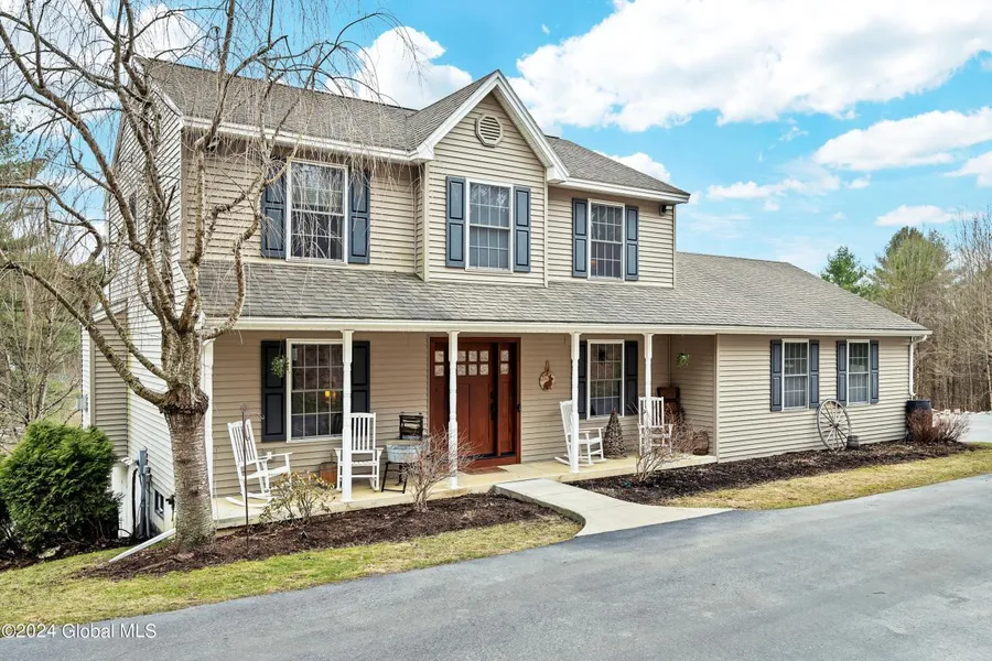 Back on Market due to buyer financing. A harmonious blend of natural beauty and modern comfort. The attention to detail is featured in this picturesque 3 bedroom, 2.5 bath colonial. Updated kitchen, office, mud room with entrance from garage with radiant flooring. Cozy family room with wood burning stove. Bonus room which can be seamlessly converted into another bedroom. There is also a heated workshop/garage right on the property. The pond has deeded rights to enjoy fishing and boating (trolling) and beautiful sunsets. Above ground pool with new liner. Walk-out basement partially finished with a large storage area. Beautiful new retaining wall and one other extra garage with awning for more outside storage. This home has it all. Direct access to 2 snowmobile trails/club