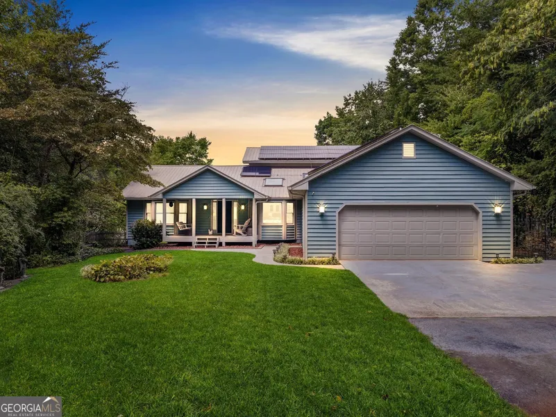 Welcome to your dream home on Lake Lanier with unparalleled open water views from the private, spacious pool deck. Incredible lake views from most rooms create an idyllic atmosphere that will make you never want to leave. This stunning estate boasts 5 spacious bedrooms, and 4.5 bathrooms situated on a private estate with 4.51 acres of picturesque land with multiple additional buildable sites. The entire home has been impeccably renovated from top to bottom, including the kitchen and all bathrooms. Enjoy the convenience of two owner's suites with lake and pool views, one on the main level and another upstairs, providing flexibility and comfort for family or guests. The outdoor area overlooks the lake and includes a large swimming pool and hot tub as well as a oversized pool deck with a custom waterfall flowing into a koi pond. The terrace level has an outdoor firepit with views of the water as well. Just a short walk down the lit path you will find a double slip boat dock with a party deck on a deep-water cove, located just a stone's throw from the water's edge. With 1,300-acre Don Carter State Park across the cove, you'll experience complete privacy on the water. The home incorporates smart technology that allows you to control the entire house with your phone, including a 12.6 kWh solar array with two Tesla backup batteries. The home is amazingly energy efficient and costs almost nothing to run year-round. The spring-fed pond with fountain adds to the serene and tranquil ambiance, while the long winding driveway offers a grand entrance to your estate. This one-of-a-kind opportunity on Lake Lanier is available for purchase as a second home or optional turn-key fully furnished vacation rental with a 10-year successful track record. Don't miss your chance to call this amazing property your home! Also, with the lake levels currently dropping - having DEEP water at the dock is a must - and where this home is located there would NOT be any water issues to worry about.