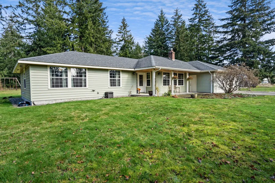 Meticulously cared for classic-styled rambler. Youll fall in love w/the beauty that shines throughout the moment you walk in the front door. Stunning wood floors capture the warmth & comfort that is sure to please. The living room w/a cozy gas fireplace makes for a relaxing getaway. Spacious eat-in kitchen & dining room make the perfect gathering spot. Beautiful master w/full ensuite bath & walk-in closet. Step outside to the covered patio & enjoy beautiful summer evenings. This 4.6 acre property is private, level, fully fenced w/treehouse & fruit trees. Oversized garage has plenty room for vehicles & storage. Plenty of space for RV/boat & more. This property is stunning & completely move-in ready. Welcome home!