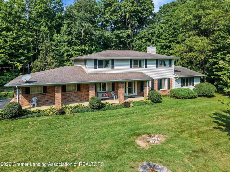 One owner (and builder) home on private 4.56 acre setting, yet close to downtown. Silver Creek runs into the Old Maid drain at the front of property. Almost 3,000 sq.ft. finished with 1st floor primary bdrm and bath addition. 5 add'l bdrms up and 2 full baths. Masonry FP in family room. Grabill cabinetry and Corian counters in kitchen, double ovens, newer microwave, planning desk. 1st floor laundry/mud room btwn kitchen and garage with 1/2 bath and service door to back yard. New furnace 2021. Central air. Well/septic. Water softener. Newer leaded glass front door with side window panels. 24'x32' pole barn with electricity. Fenced vegetable garden area is 130'x100' and tilled for next spring planting! Holt/Dimondale schools. 1st time offered!! Sq Ft per photographer floor plan app.