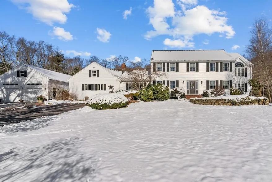 This charming colonial, nestled on 4.5 acres at the end of a peaceful cul-de-sac, offers both privacy and convenience. Featuring an spacious layout, it boasts a first-floor guest suite and a 2nd bedroom with full bath for ultimate comfort and accessibility. The home is designed for extended family or guests, ensuring privacy and comfort. The inviting interior includes hardwoods throughout, generously sized rooms, a cozy living area, and an updated, fully equipped kitchen. Outside, the property is complemented by a beautiful gunite in-ground pool, cobblestone patio and well appointed cabana including outdoor shower, perfect for relaxation and entertainment. With ample land and a serene location, this home combines luxurious living with the tranquility of nature.