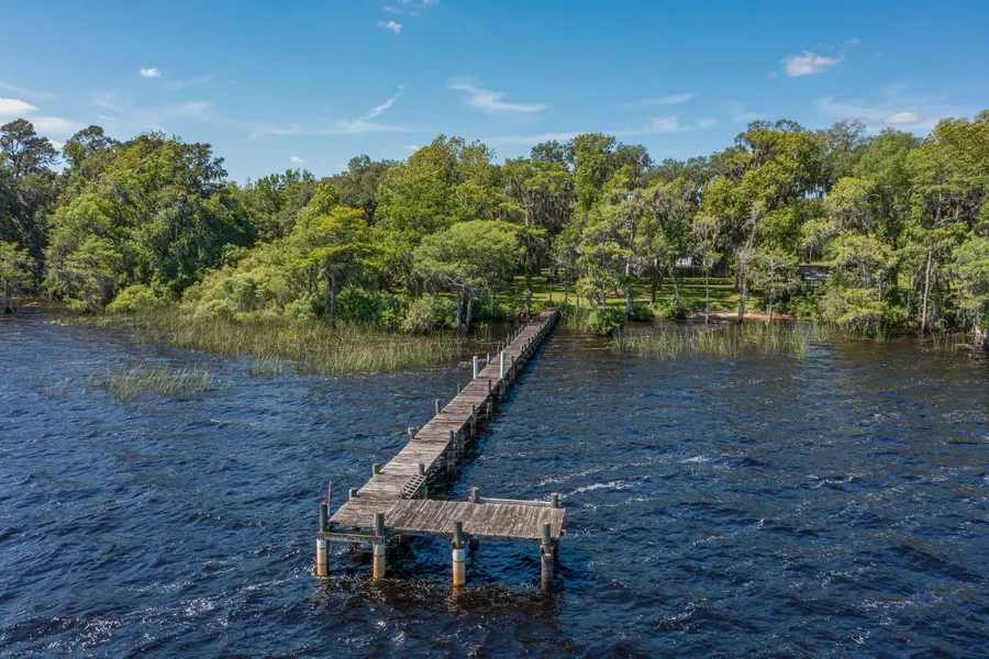 Step back in time to this OLD FLORIDA WATERFRONT PROPERTY! Located on a dead-end street. Approx 244 ft of unspoiled waterfront on Lake Crescent, navigable waters to the Ocean. 4.5 Acre of magnificent, matured oak trees with azalea bushes around most of them! Breath taking views in every direction. Remodeled solid built 1952 house, over 3000 Sq. Ft., 5 bedrooms and 3 baths. Fireplace in main living area, real hardwood floors, modern kitchen opens to a screened 14x57ft Lanai overlooking the lake. 2 bedrooms downstairs. Efficiency apartment upstairs with 3 rooms and a bathroom. With French doors that open to a balcony that allows a view of the whole property, including the lake. Huge laundry room, an office and bathroom in garage. Have a party on the Lanai, sit in the screened natural area, with NO bugs, or play in the almost Olympic size screened in pool with a diving board. Start your day watching the otter and deer play in your backyard. Yet, you are only 2 miles from a grocery store, restaurants, banks and the hometown of Crescent City. All of this is just 1hr from St Augustine or Daytona Beach. Come LIVE IN YOUR OWN PEACEFUL RESORT!