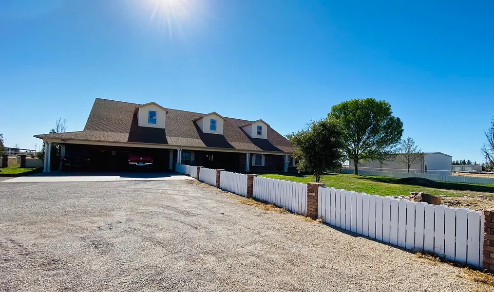 Stunning, large, brick 4-bedroom, 3 bath home on over 4 acres of land with an office, formal dining room, large theater/media room, and TONS of storage. This home also features a large 75 X 50 shop that is heated and cooled with its very own apartment that has a kitchen, extra-large laundry room, and bathroom. Lift station in shop is included. There is also a large water barn, with a tac room, pipe fencing and horse corrals on the property. Seller is including the theater screen and projector in the media room. Tons of possibilities.