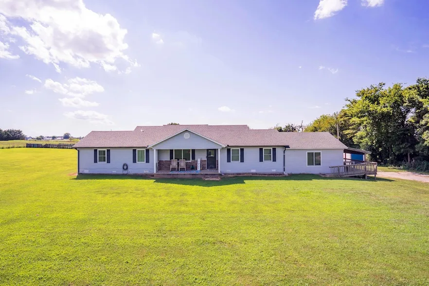 Welcome to your dream countryside retreat! Nestled on 4.6 sprawling acres, this stunning property offers the perfect blend of serene living and versatile functionality. This beautifully maintained home features 3 bedrooms and 3 bathrooms, including a spacious primary bedroom that leads out onto the deck. Imagine stepping out each morning to enjoy your coffee while taking in the breathtaking views of the surrounding landscape and captivating sunsets over the field. The home is thoughtfully designed to accommodate a variety of needs and lifestyles. It includes a mother-in-law suite complete with its own second kitchen. A tranquil pond, stocked with catfish, bluegill, and smallmouth bass, invites you to relax or enjoy fishing at your leisure. The grounds offer ample space for starting your own hobby farm, creating a garden, or simply letting your dogs run and play under the open sky. Experience the ultimate in peaceful living with the added benefit of an ideal setting for those who love to entertain or seek tranquility. This property truly combines the charm of countryside living with modern conveniences, offering a rare opportunity to embrace a lifestyle of comfort and freedom. Don't miss out on making this extraordinary property your own!