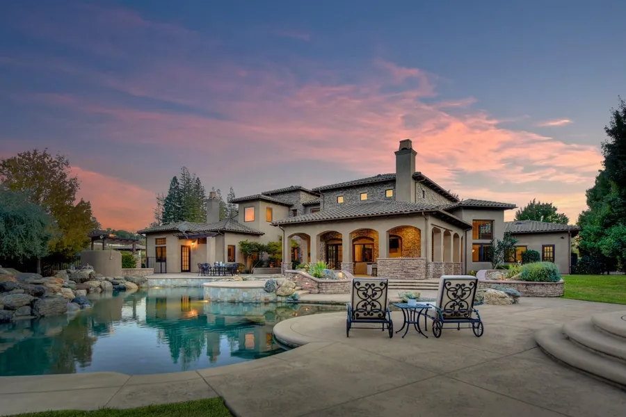 This Tuscan-inspired, custom-built retreat resides on 4.6ac in a gated community in the beautiful town of Loomis. A grand front driveway + gatehouse lead you to an expansive courtyard with portico + fireplace. The backyard is the ultimate retreat for entertaining - PebbleTec salt water pool (beach entry, wading pool, spa, custom-lighting, outdoor shower + fountain), a loggia with an outdoor kitchen + bar, plus fire pit. Primary BD suite has a fireplace, stunning bath + shower, sun room, + backyard access. Kitchen + great room detail a coffered ceiling and views of the backyard, custom granite counters with bar area seating, nook, + butler's pantry. Front office has its own courtyard access. BDs two + three have an en suite set-up, plus an open bonus-area. JELD-WEN doors and windows throughout, 2nd level guest quarters and game room, A/C units for each zone of the home, Thermador kitchen ...