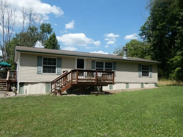 If you're looking for a move-in-ready home and country quietness, you won't want to miss seeing this well maintained manufactured home offering an extra nice kitchen with lots of cabinets, a spacious open concept living room, dining room and kitchen w/a bar and appliances, two bedrooms, a den that could be a third bedroom, a large master bedroom and bath with a tub and a separate shower, a beautiful wood burning fireplace, sliding glass door opening to an amazing 30 ft covered deck overlooking the 4.6 acres of woods and pasture, a 20x24 pole building big enough for 2 cars, a gazebo and a quiet country location that's within 5 minutes of I70. All of this, and it's priced at Just $174,900!!! Call for your appointment today!!